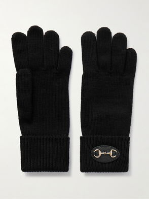Horsebit-detailed Leather-trimmed Wool Gloves
