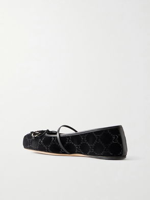 Horsebit Ballerina Leather-trimmed Crystal-embellished Velvet Flats