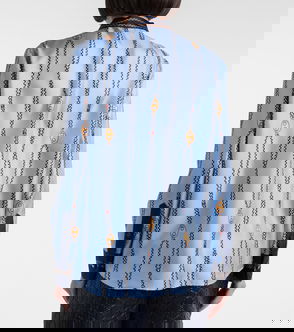 Tie-Neck Horsebit-Embellished Denim Shirt
