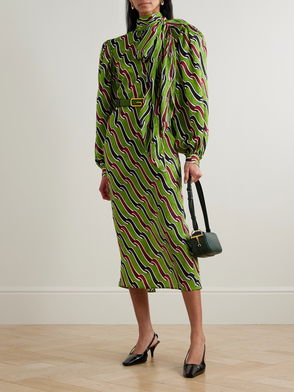 Tie-detailed Printed Silk-jacquard Midi Dress