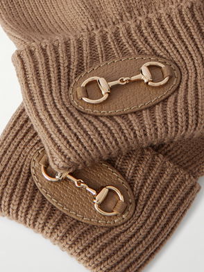 Horsebit-detailed Leather-trimmed Wool Gloves