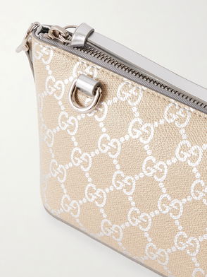 GG Emblem Metallic-trimmed Printed Textured-leather Shoulder Bag
