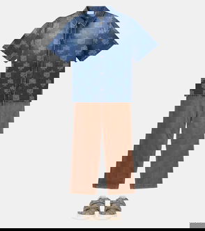 Printed Denim Bowling Shirt