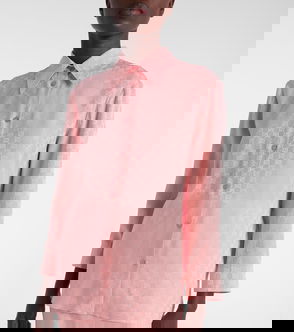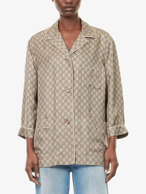 Monogram-Pattern Drawstring-Hem Satin Shirt