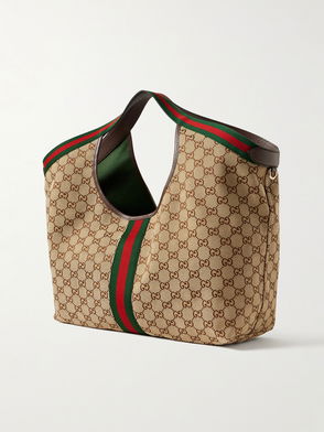 GG Emblem Leather-trimmed Printed Coated-canvas Tote