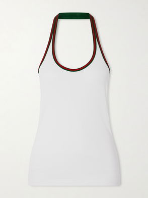 Striped Ribbed Cotton-blend Jersey Halterneck Tank