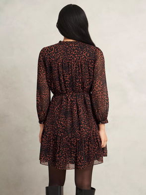 Monikah Long Sleeve Animal Print Dress, Black Copper