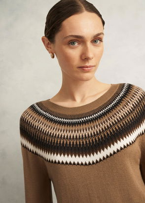 Camel Greta Wool Blend Fairisle Crew Neck Knitted Jumper