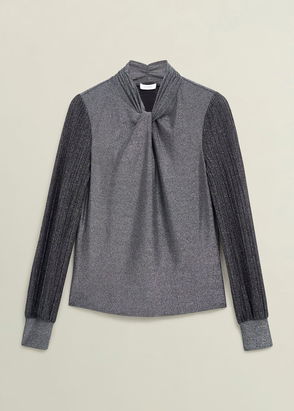 Silver Metallic Ashley Pleat Sleeve Twist Neck Top
