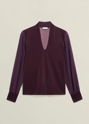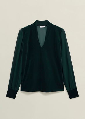 Lorelai Velvet High Neck Sheer Sleeve Top