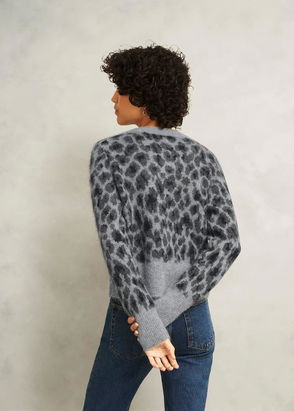 Grey Raleigh Leopard Print Crew Neck Knitted Cardigan