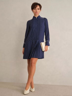 Tina Pleated Drop Hem Dress, Navy