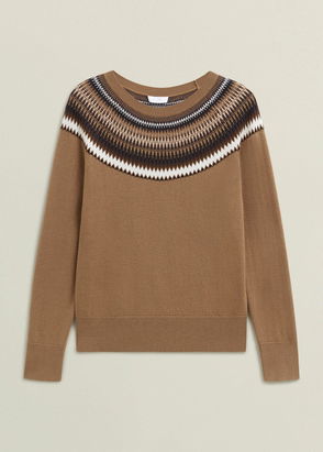 Camel Greta Wool Blend Fairisle Crew Neck Knitted Jumper