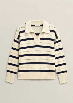 Ivory Beauford Cotton Stripe Polo Knitted Jumper