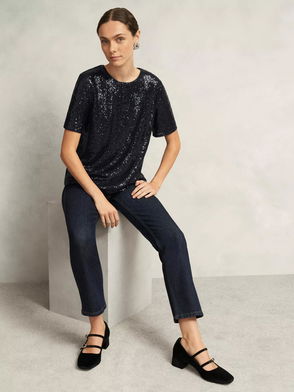 Blue Julia Ribbon Printed Key Hole 3/4 Sleeve Top