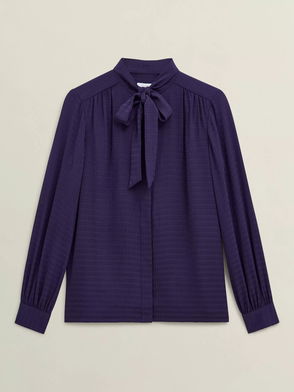 Gabrielle Jacquard Tie Neck Top, Midnight Purple