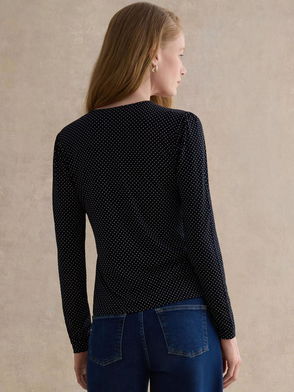 Hannah V-Neck Spot Print Top, Navy/Ivory