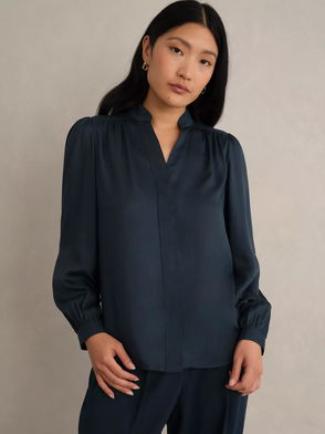 Gabrielle Jacquard Tie Neck Top, Midnight Purple