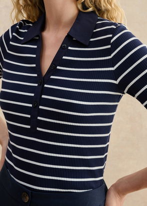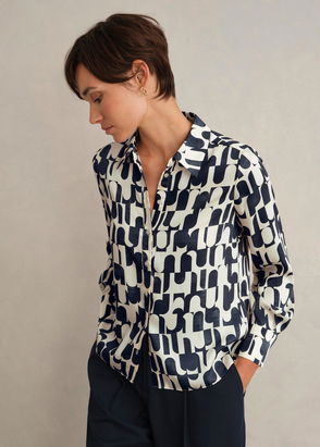 Hannah V-Neck Spot Print Top, Navy/Ivory
