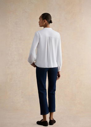 Valerie Polka Dot Tie Neck Top, Navy/Ivory