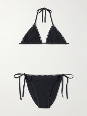 Gina Swarovski Crystal-Embellished Seersucker Bikini