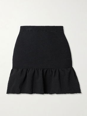 Ruffled Waffle And Seersucker Mini Skirt
