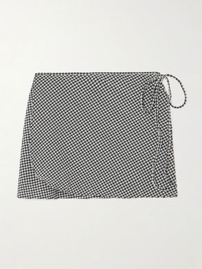 Jean Ruffled Gingham-Trimmed Seersucker Bandeau Bikini