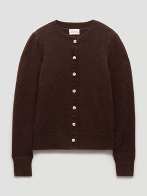 Puff Shoulder Wool Rich Cardigan, Dark Brown