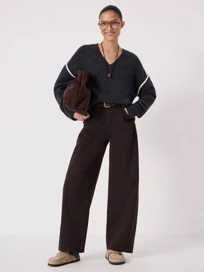 Billie Contrast Stitch Wool Blend Jumper, Charcoal Marl
