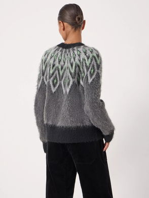 Crew Neck Fair Isle Cardigan, Charcoal Marl