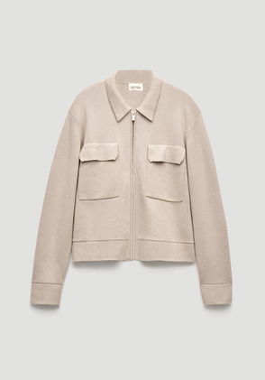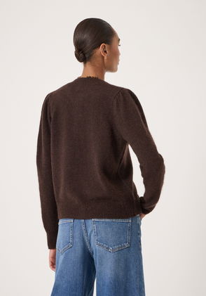 Wool Blend Animal Print Collar Neck Knit Cardigan, Dark Brown