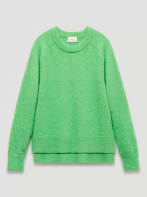 Crew Neck Side Splits Wool Rich Jumper, Green