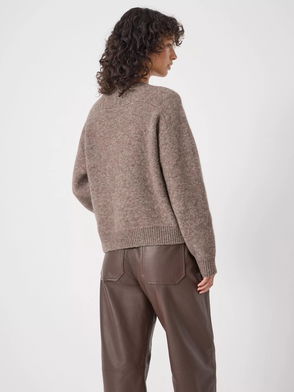 Collar Longline Pure Merino Wool Jumper, Dark Brown