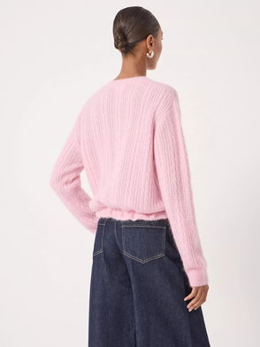 Cable Knit Drawstring Wool Rich Cardigan, Strawberry Pink