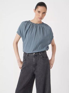 Gathered Crew Neck Detail Top Containing LENZING™ ECOVERO™ Viscose