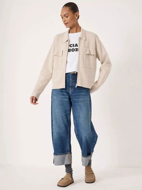 Gathered Shoulder Detail Wool Rich Cardigan, Stone White