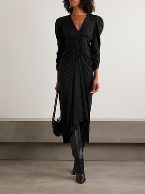 Albini Gathered Polka-dot Stretch-silk Jacquard Midi Dress