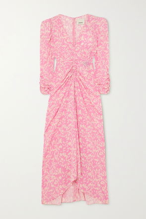 Ruched Floral-Print Stretch-Silk Crepe Dress