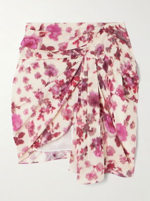 Ovia Draped Floral Silk-Blend Mini Skirt