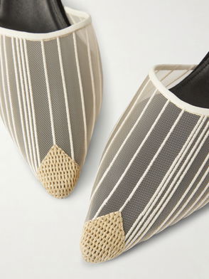 Tourni Bow-detailed Leather-trimmed Mesh Pumps