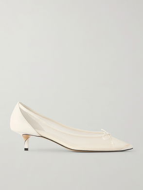 Tourni Bow-detailed Leather-trimmed Mesh Pumps