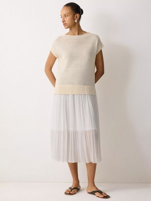 Pleated Skirt Wool Rich Jumper Dress, Khaki