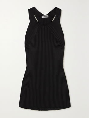 Feather-Embellished Layered Knitted-Silk Midi Dress