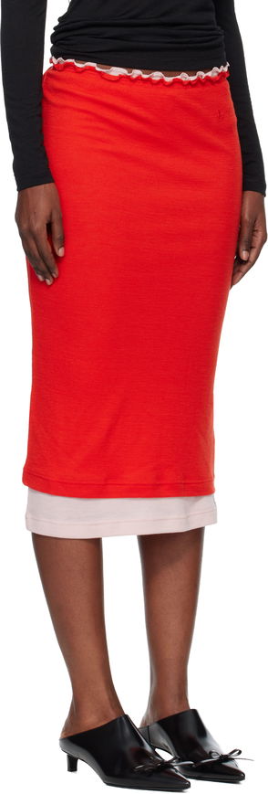 Red & Pink Lightweight Wool Layered Midi Skirts Set