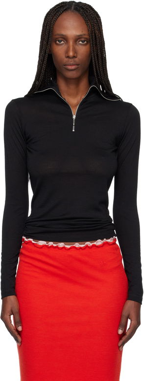 Black Lightweight Technical Wool Jersey Polo