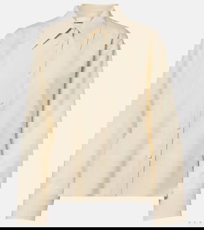 Oversized Tie-Detailed Wool-Gabardine Shirt