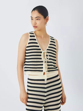John Lewis Broderie Anglaise Shell Pyjama Top, Black