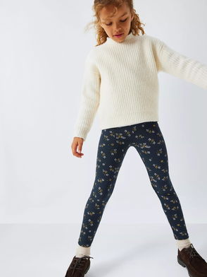 Kids' Plain/Stripe/Floral Jersey Leggings, Pack Of 3, Berry, Blue, Cream