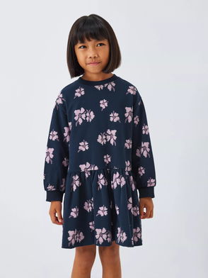 Kids' Floral Jersey Smock Dress, Berry, Blue