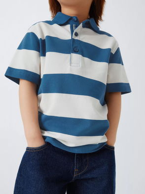 Kids' Friends Stripe Rugby Shirt, White Blue Green